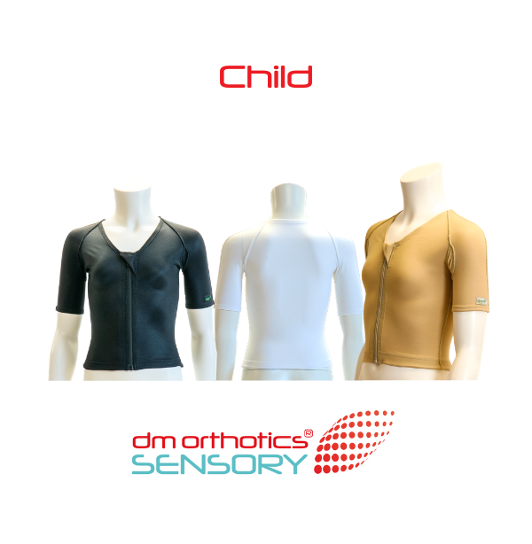 Det kan hjælpe at have meget tætsiddende tøj på, som ikke har irriterende syninger og som føles behageligt for børnene. Sensory blusen er udviklet for at hjælpe disse børn, og Sensory tøj fås som bluse eller leggings. DMO® Sensory tøj i standardstørrelser, er designet til at forbedre sensorisk proprioceptiv feedback og stabilitet til kroppen gennem dybe tryk. Dette foregår via kompression gennem stoffet.