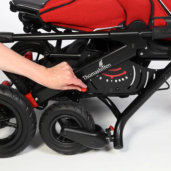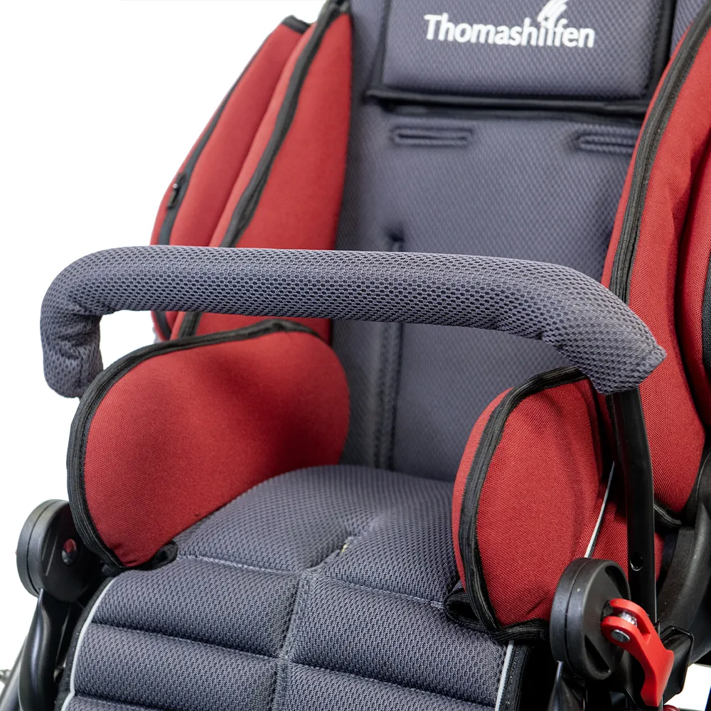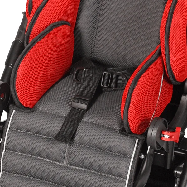 BSS (Balance Safety System) – sikkerhedssæde; fysiologiske drejepunkter for hofte- og knæled; åndbart sæde- og ryglænsbetræk samt sidepolstring (frit valg); ekstra polstring for øget siddekomfort; brandhæmmende stoffer; laterale kropsstøtter; tipbar fodstøtte, højde- og vinkeljusterbar; beslag til sol- og regnovertræk; trinløs justerbar ryghøjde, hoftevinkel, sædedybde og sædebredde; let tilgængelige justeringer med stjerneskruer