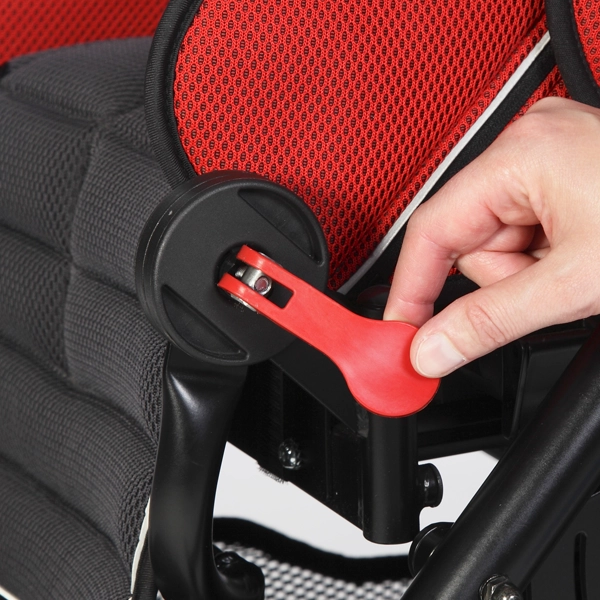 180° tilbagelænet reclining position uden tiprisiko takket være BSS sikkerhedssæde