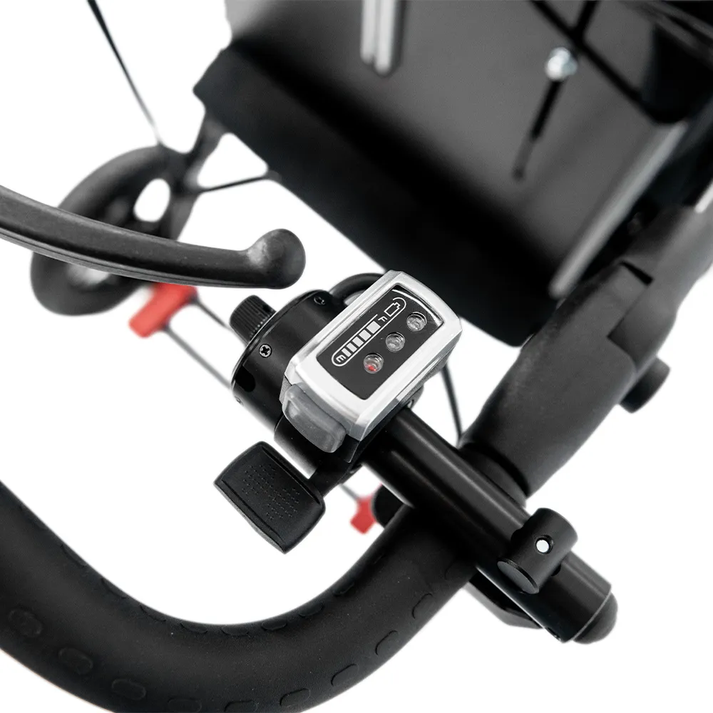 Med en egenvægt på ca. 4 kg kan motorenheden monteres hurtigt og uden brug af værktøj. Systemet understøtter fremdrift og reducerer den nødvendige skubbekraft, hvilket mindsker belastning af skuldre, ryg og håndled – særligt ved længere transportstrækninger, stigninger og ujævnt underlag.